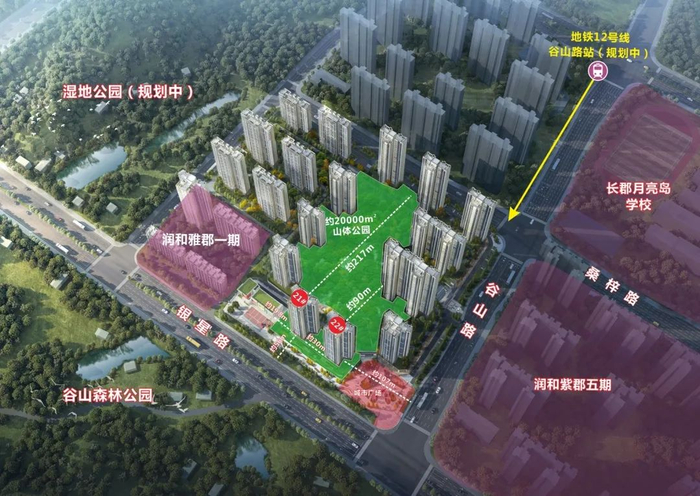 润和紫郡自面世以来收获约11000多户业主充分信赖,是金星北板块拥有十年历史的流量大盘。6期润和雅郡是润和城实业2020年为实现“住宅精品化、高端化”战略目标而倾力打造的首个城市原生山景高端低密度住区。为实现“视野所致,皆为原生峰峦”的项目开发愿景。结合原始地形,保留自然山体,形成多层台地,区别于长沙大部分住宅布局模式,创新开发山地花园居住社区。