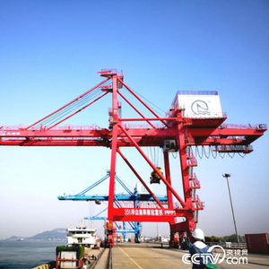 安徽芜湖港35吨岸边集装箱起重机正在作业