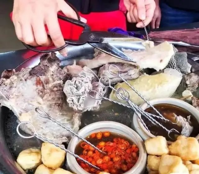 这种特制的小米辣酱汁对于嗜辣一族来说就是化州牛杂的灵魂所在。剪碎的小米椒装在搪瓷罐里,辣味被滚烫的牛肉高汤激活,香气撩拨着四周“嗷嗷待哺”食客的口水。
