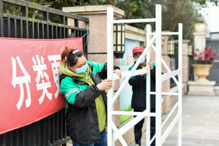 “只有扎牢小区大门这道‘篱笆’,才能把风险隐患降到最低。”为了实现无接触式投递,姚红还考虑在小区门口设立一个外卖、快递临时放置架。她在电话里沟通协调好相关事宜,下午4时多,叮咚买菜的工作人员便上门安装好货物架,速度之快令人点赞。