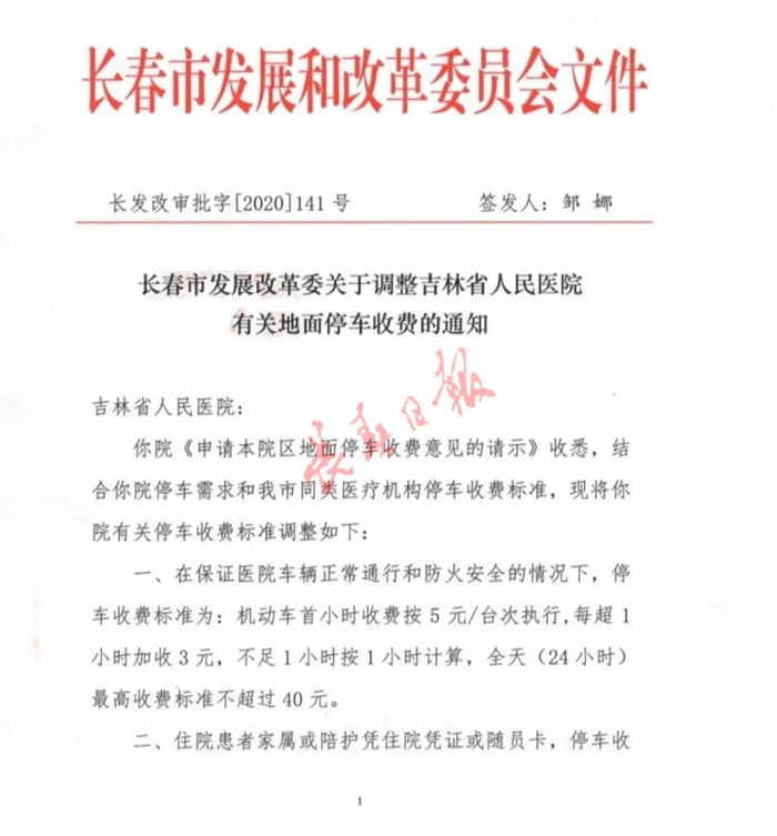 近日,长春市发改网官网公布了《关于调整吉林省人民医院有关地面停车收费的通知》。