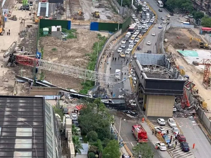 4月19日,广东深圳一在建工地塔吊安装调式塔吊垂直度时、拆掉塔吊四个支撑腿中的两个支撑腿的全部6个螺丝,塔吊吊钩上吊着2个塔吊标准节,塔吊臂上走车到司机远端,造成塔吊基础连接处力矩增大,塔吊整体失稳倒塌,2死3伤。