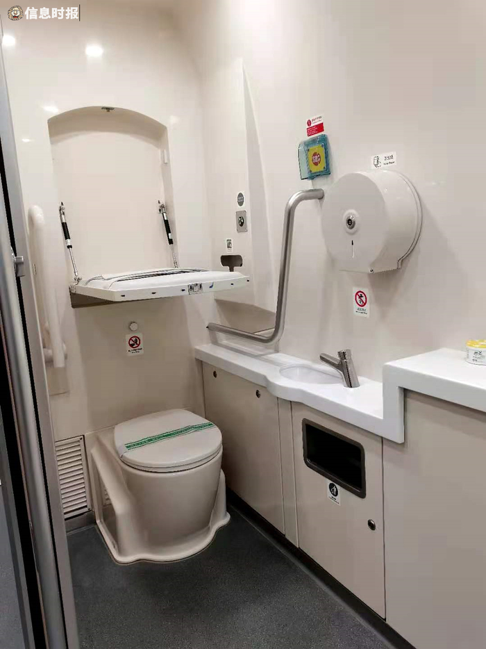 ★站站配备洗手间。每个站至少配有一间男卫生间、女卫生间、第三卫生间,两条线路共设54个卫生间,其中第三卫生间16个。