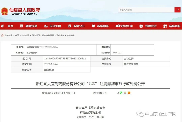 近日,浙江省仙居县政府网站公开了对司太立制药股份有限公司“7·27”泄漏爆炸事故的调查报告与行政处罚。