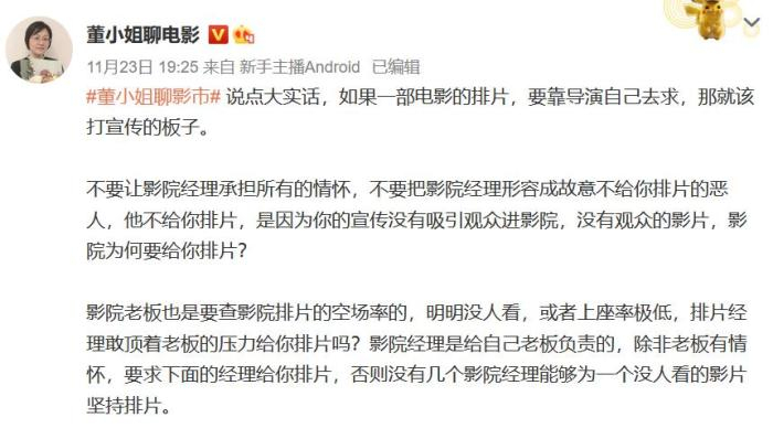 曾多次为《气球》宣传的济南百丽宫影城经理就在微博上探讨了这一现象,“不要让影院经理承担所有的情怀,不要把影院经理形容成故意不给你排片的恶人”,她说,影片的排片最重要还是营销宣传,“宣传做好了,就可以倒逼影院给你加排片,不用你说,观众的选择就会让影院经理妥协”。