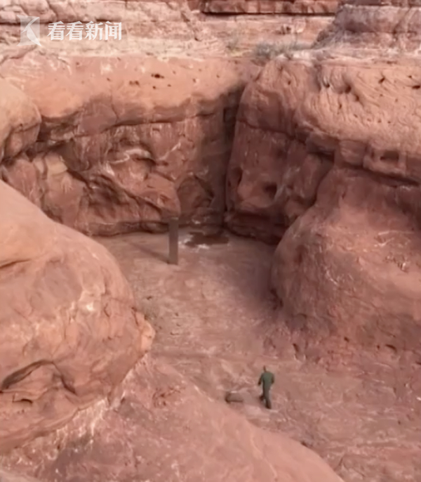据《纽约时报》当地时间11月24日报道,11月18日,犹他州公共安全局航空局的工作人员在协助野生动物资源部门驾驶直升机统计犹他州东南部的大角羊时,发现了一个奇怪的东西。工作人员降落后发现,在一处偏远红岩地区的狭槽峡谷底部,立着一块三棱柱形的金属物体。