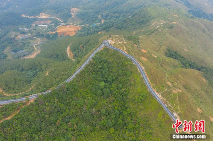 11月23日,航拍广西陆川县龟岭谷乡村旅游区的“八字岭长城”。陈冠言 摄