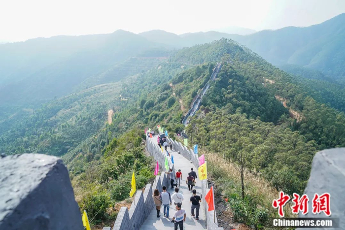 因模仿北京八达岭长城而修筑,广西玉林市陆川县境内的“八字岭长城”迅速走红,成为当地人的热门“打卡”点。23日,记者前往陆川县探访这座被网友称为广西版高仿“长城”的建筑。