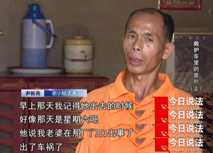 2016年12月,广西壮族自治区桂林市永福县的尹新亮接到电话,得知自己的妻子谢小姑发生车祸,尹新亮立即赶到妻子做工的工厂。