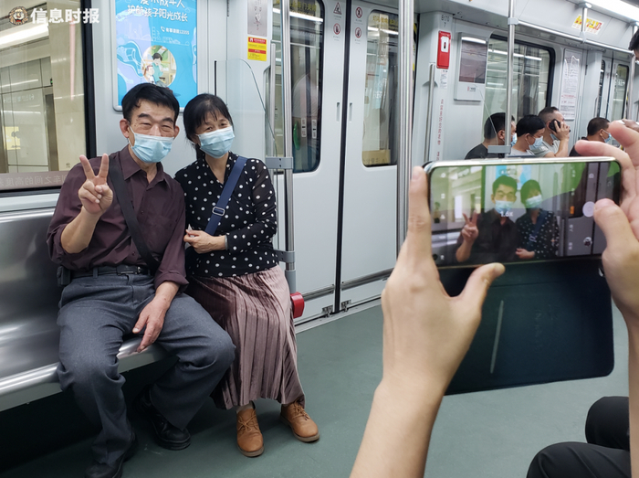 曹姓夫妇一坐上地铁便迫不及待开始自拍合影,“我们盼了十几年的地铁终于开通啦!”曹姓夫妇告诉记者,同德以前非常荒凉,但近几年发展迅速,人也多了起来,尽管公交线路也不少,但上下班高峰期交通非常堵塞,地铁的开通,能很好的缓解交通压力。