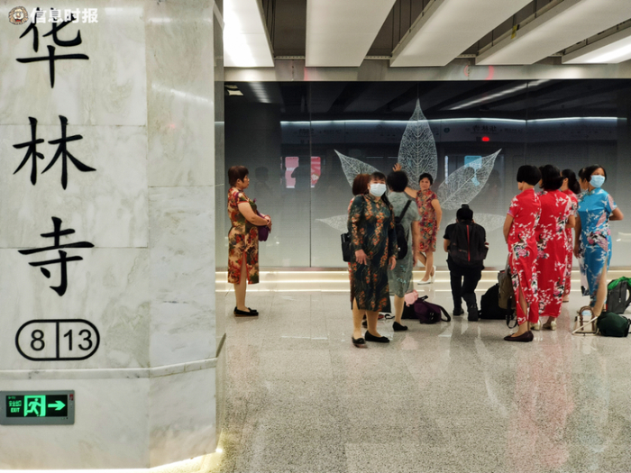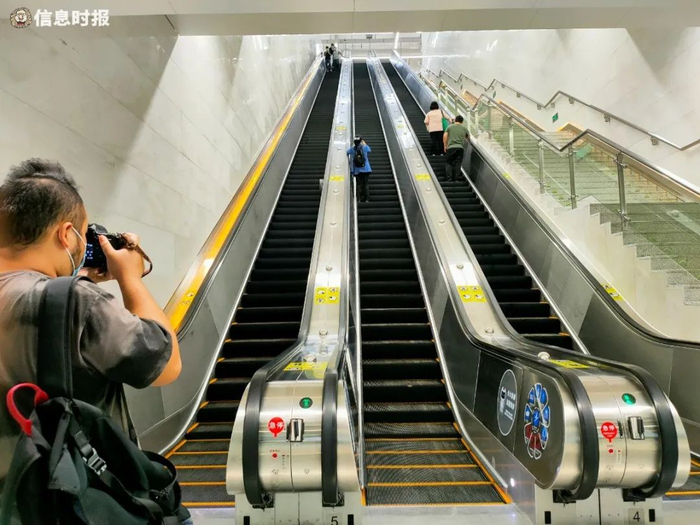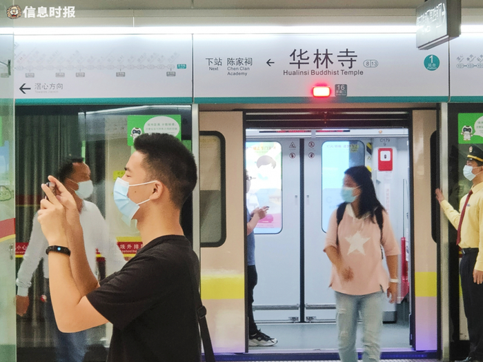 杨小姐表示,一进站感觉像是置身于寺庙,站台大厅很空很静,极简的黑白渐变风格让人一下子就静了下来,坐扶梯上去后站内播放喜庆的广府音乐,又让让人好像置身繁华的街道,这些设计很符合上下九和华林寺同处一地,但又互不干扰的情况。