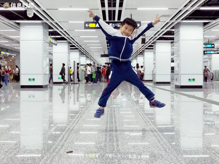 陈家祠站新站厅够宽敞,放学经过的小学生高兴得跳起来。