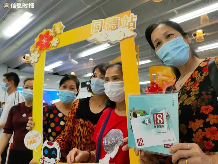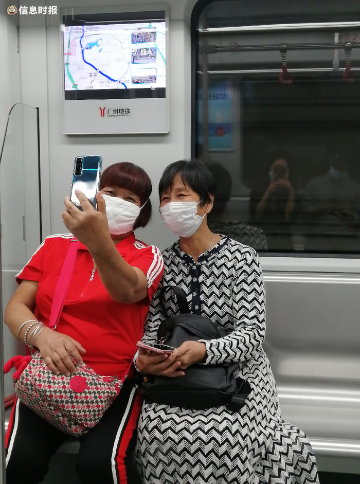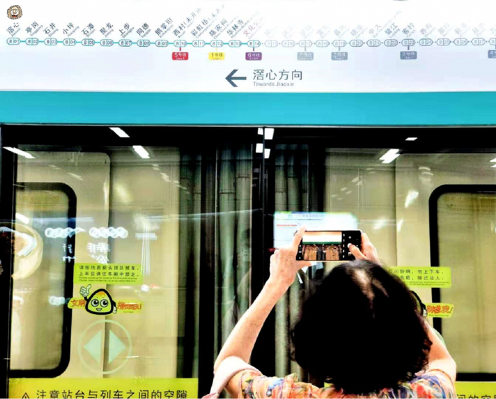 张阿姨和小姐妹也是头班车“尝鲜者”,她们从同德站上车去往滘心,张阿姨先在同德站内拍照打卡,坐上头班车后,小姐妹又帮张阿姨录视频留念,“咱们同德围终于有地铁站啦!”张阿姨对着镜头兴奋地说道。
