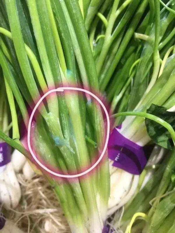 卖葱的商家当然不认可给葱染色的说法。有商家表示,这些蓝色物质是葱生长过程中,为了除菌使用了硫酸铜造成的。