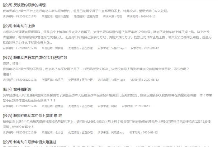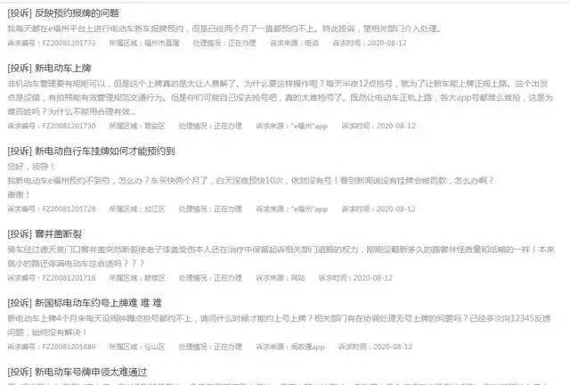 福州市五城区电动自行车全面实行新式号牌管理该政策施行之后新车号码牌预约难等问题普遍出现在12345便民服务平台上能看到部分福州市民反馈电动车上牌难的问题