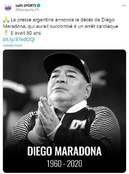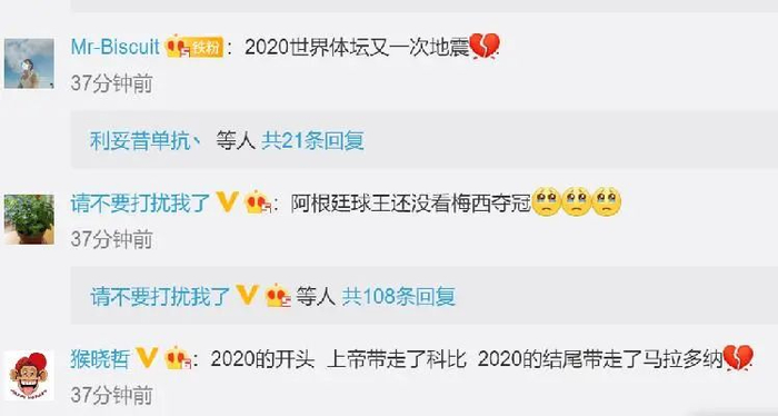一代球王马拉多纳去世。众多中国体育媒体人士和球迷也在社交平台上发声。