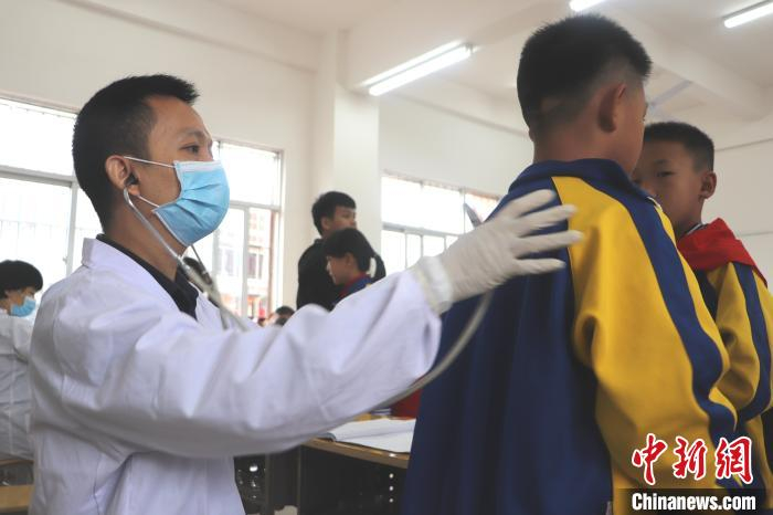 五华县黄狮小学,三年级的小学生在体检。(韩辉 摄)