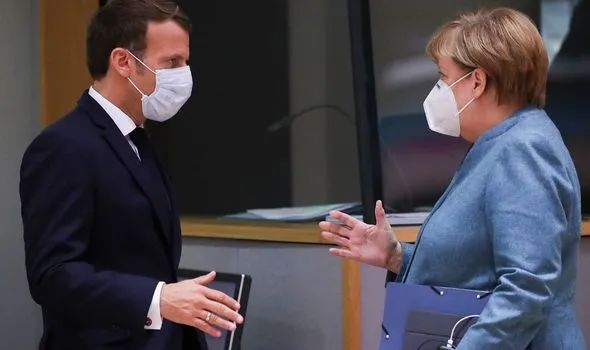 马克龙与默克尔。英国每日快报图