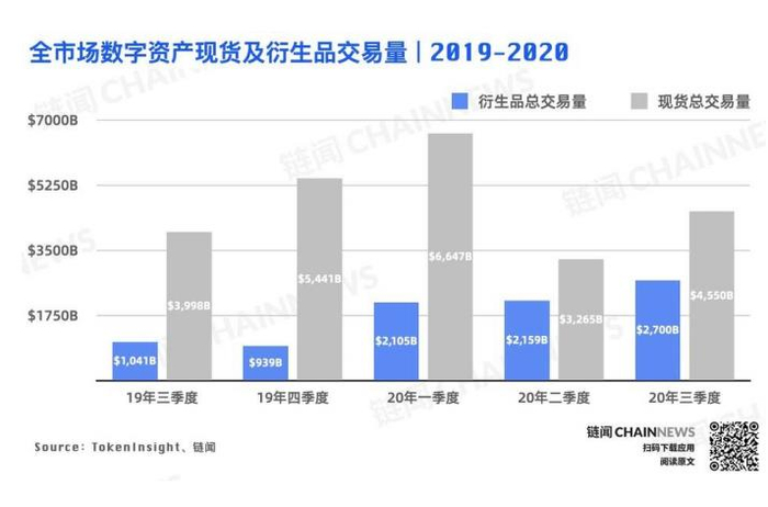 随着更多机构和投资者的需求,数字资产市场的衍生品交易品种也在不断增加、交易规模不断扩大。据分析机构TokenInsight 数据显示,2020 年数字资产衍生品市场交易额迎来突破 2 万亿美元,为 2.7 万亿美元。该数据较上一季度增长 25.1%,较 19 年第三季度增长 159.4%。
