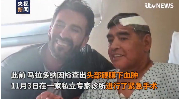 10月30日是马拉多纳的60岁生日,11月1日,私人医生为马拉多纳进行了诊断,初步结果是贫血导致疲劳。在私人医生对马拉多纳进行CT检查时,老马头部被查出血肿,那是之前一次摔倒所导致的。3日,马拉多纳进行手术解决头部血肿问题。手术很成功,马拉多纳只用了一周就出院了,医生都惊叹于他的康复速度。