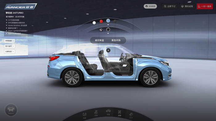 广汽本田打破了业界传统的单向沟通,通过引入全面深化数字化交互,实现品牌与用户双向沟通互动,进一步提升用户对品牌的亲近感。数字化交互系统运用3D建模技术,打造出和实车100%一致的车辆模型,用户可以在云展厅看到媲美实车的全车系动静态展示。它是本田对中国市场和时代的适应。可以最大限度的减少虚拟与现实之间的差距,本田数字化交互模式系统从设计之初即遵循了优质的模拟体验。可以为用户带来无限接近实景的使用体验。在此基础上,明年上半年,广汽本田还将引入专业的咨询坐席,为客户提供线上一对一看车介绍服务。用户“足不出户”,便可享受一站式看车、咨询、购车的优质服务。