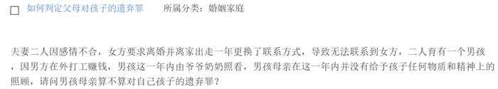 原标题:女方要求离婚,然后失联一年多,这期间也没有给孩子任何照顾,这算遗弃罪吗?