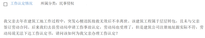 首先,目前县劳动局已经受理你们的工伤认定申请,那么可以推断你父亲和建筑公司之间属于劳动关系,县劳动局作出工伤认定决定后应书面通知建筑公司,因建筑公司实际经营地不明导致送达不到的,不影响工伤认定结果。建议家属积极寻找对方实际经营地线索,并配合劳动局相关工作。