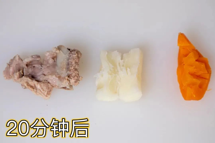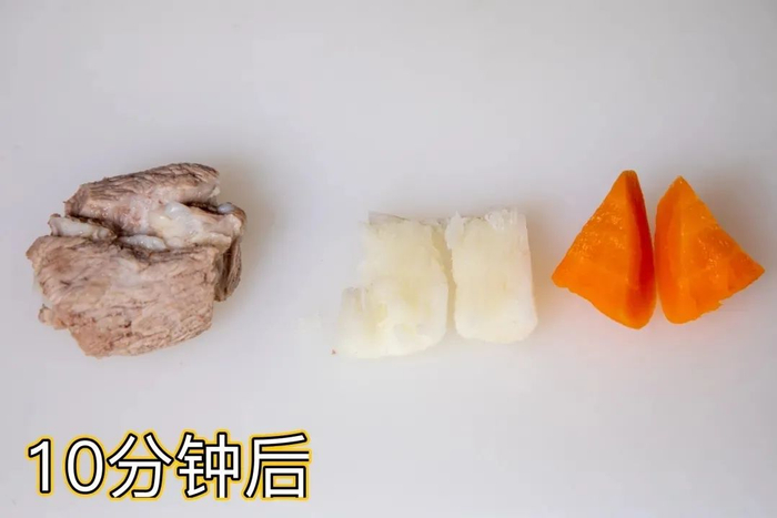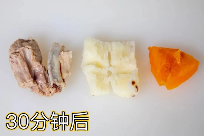 还有铁棍山药,10分钟的时候开始变软,30分钟的时候,筷子一戳就变成泥了,特别软糯!