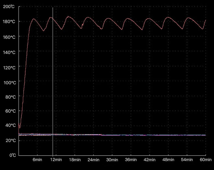 *高压锅必须密封,普通温度计检测数据不准确,故此处采用锅内自带NTC所检测数据,检测液体为食用油