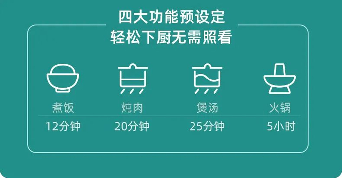 3、四大安全保障,五种炖煮模式,轻松下厨,无需照看,小白也能用得“炉火纯青”~