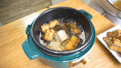 晚上下班还可以用它煎个鱼。热锅下油,热油下鱼,带鱼一点点变得金黄,外焦里嫩,咬一口又香又酥!