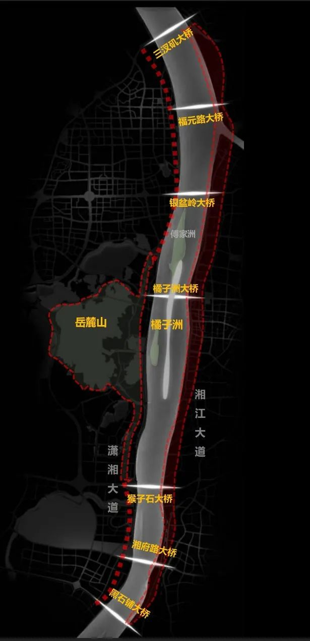 道哥26日从长沙城发集团获悉,长沙将对三汊矶大桥至黑石铺大桥全长约20公里湘江两岸,按照“增亮、补齐、提质、维修”的原则,对重要节点部位、楼宇及跨江桥梁城市照明设施,进行补齐性提质升级。