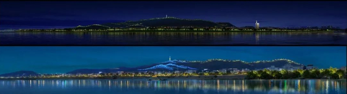 针对岳麓山的照明主要以维护维修为主,注重生态环境保护,严控原有设计区域,恢复原有照明品质,避免过度亮化。针对岳麓山天际线不连贯的问题,将对山脊灯光进行补齐增亮,对天马山、凤凰山修剪树枝,恢复原灯光效果,最终达到前方“水墨晕染”,后方“俊朗白描”的视觉效果。