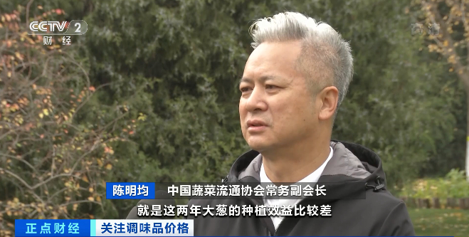 中国蔬菜流通协会常务副会长 陈明均:主要原因就是这两年大葱的种植效益比较差,影响老百姓的种植积极性;另一个原因是今年的北方地区,像山东这些主产区雨水比较大,出现了水涝的现象,影响了大葱的单产。