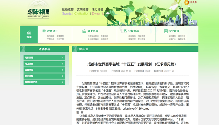 成都市体育局网站截图