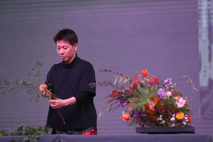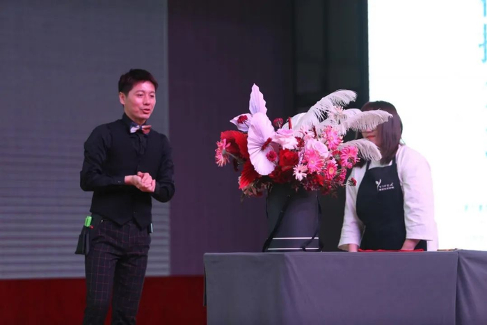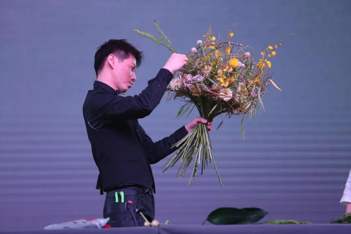 值得一提的是来自苏州“壹菲花艺”学院创始人、院长王亚峰,运用各参会企业提供的新优品种花卉及材料,现场创作了4款不同风格、不同运用场景的花艺作品,生动直观地展示了新品种花卉的市场潜力。