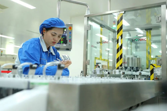 这是在北京科兴生物制品有限公司包装车间内包装生产的流感疫苗。