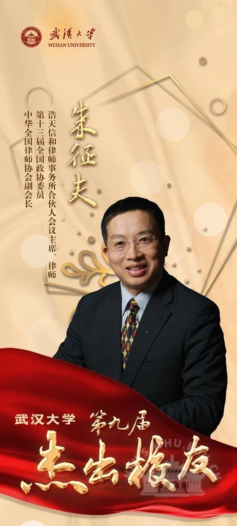 朱征夫,男,1964年9月生。1984年本科、1987年硕士、1999年博士毕业于武汉大学法学院。现任浩天信和律师事务所合伙人会议主席、律师。第十三届全国政协委员(现为第三任期)、中华全国律师协会副会长(现为第二任期)。曾获“全国优秀中国特色社会主义建设者”等多项荣誉。朱征夫不仅行业贡献突出,还广泛参与公共事务,围绕法治建设和人权保护积极参政议政,提出废除劳动教养制度、对收容教育制度进行合宪性审查等80多项提案,多项提案具有广泛社会影响。