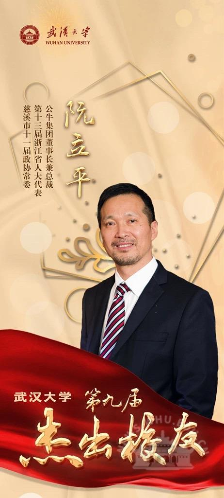 阮立平,男,1964年11月生。1984年本科毕业于武汉水利电力学院工程机械专业。公牛集团董事长兼总裁。第十三届浙江省人大代表,慈溪市十一届政协常委。“公牛”作为国内民用电工行业的领导者,以匠心打造民族品牌,连续多年入选“中国 500 最具价值品牌排行榜”。阮立平关心学校发展,在支持学校发展建设方面做出重要贡献。