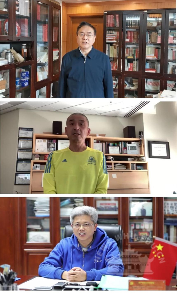 陈晋、程亦凡、毛明三位校友因工作原因无法亲临现场领奖,他们通过视频传达了对母校的思念、感恩和祝福。
