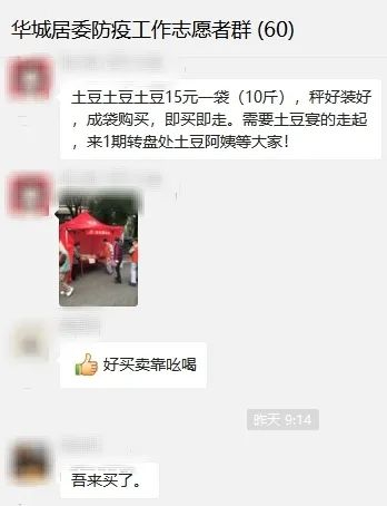 “各楼道组问问,有要买土豆的,我们送货上门!”