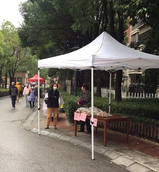 说干就干。第二天一早,物业与志愿者们搬桌子的搬桌子,搭帐篷的搭帐篷,一个简单的小摊位布置起来了。“居委又帮忙打印了收钱的二维码,塑封后贴在桌子上……他们说,‘有什么困难和我说,有志愿者支持你!’我真的很感动。”