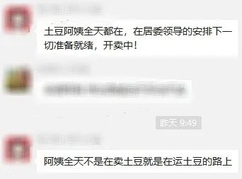 于是,“土豆阿姨”就缩在车厢里,打了把伞,贴了张纸,悄悄地卖。很快,有途经的业主发现了这个情况。微信群、公众号……消息层层传递,整个小区闻风而动,一场暖心的“土豆消灭战”就此开启。
