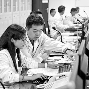 嫦娥四号团队科研人员在飞控工作现场。资料图片