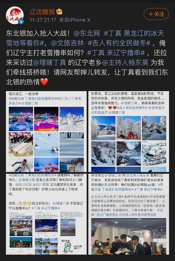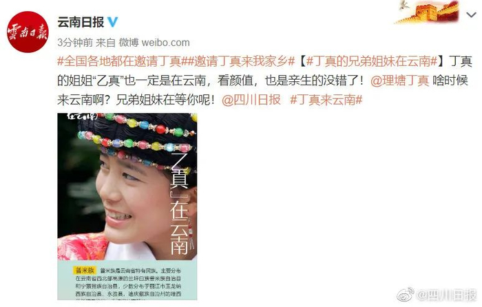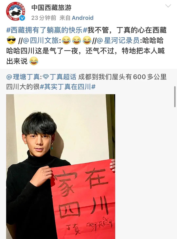 “四川文旅”官微随之发起话题#其实丁真在四川#。