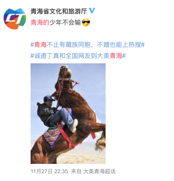 四川决定拉出本尊,来结束这场“混战”,于是丁真又发了这样一条微博: