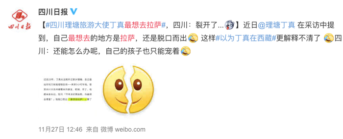 相关话题#丁真最想去的地方是拉萨#一度冲上热搜。
