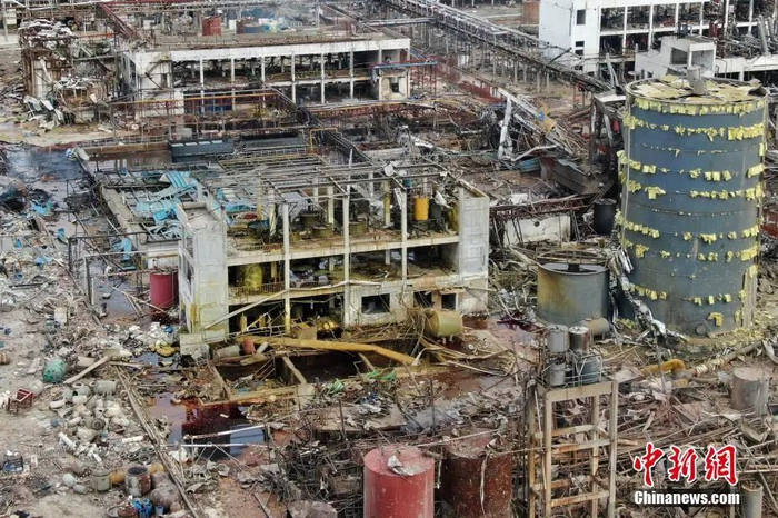 资料图:2019年3月22日,航拍江苏盐城响水县陈家港镇江苏天嘉宜化工有限公司爆炸核心现场。中新社记者 泱波 摄