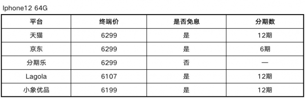 这个结果让记者有些意外,一向以3C为核心产品线的京东无论是终端价,还是免息期数都被Lagola比了下去,看了下天猫、分期乐、小象优品的终端价和免息期数也都没比赢Lagola。