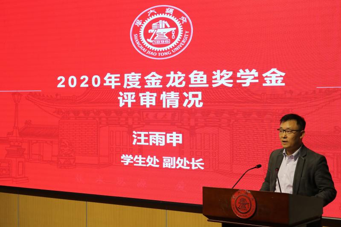 汪雨申介绍了本届金龙鱼奖教金、奖学金的评选情况,并宣布2020年度金龙鱼奖教金、奖学金的获奖名单。